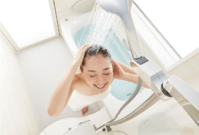 空気を含んだ大粒で柔らかいシャワーがワンランク上の心地よさを実現した新タイプ。立ち姿勢でも、座り姿勢でも、オーバーヘッドシャワーが楽しめます。