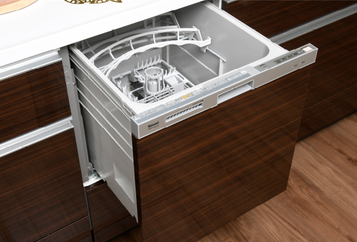 引き出し式で食器の出し入れが容易なビルトインタイプ。食器洗いの手間を省き、電気・水道代の節約に貢献します。