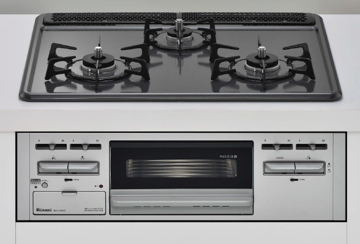お手入れのしやすいホーロートップコンロを採用。さらに、魚を美味しく焼ける、水なし片面グリルも装備しています。