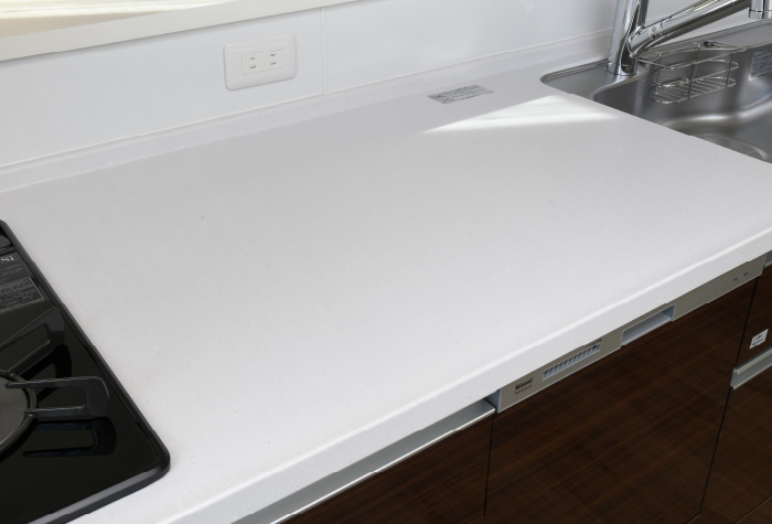高級感のある人造大理石のカウンタートップ。汚れが染み込みにくく、お手入れが簡単です。