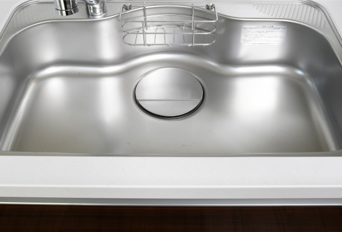 水道水や食器がシンクにあたる音の響きを低減する静音シンクを採用。大型の鍋なども洗いやすい幅広のワイドシンクです。