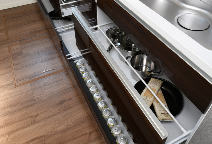 奥までしっかり利用でき、鍋やフライパンなども効率的に収納できます。