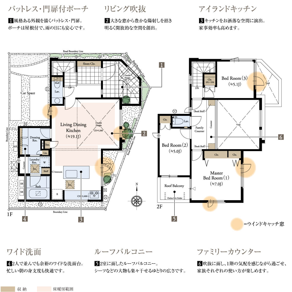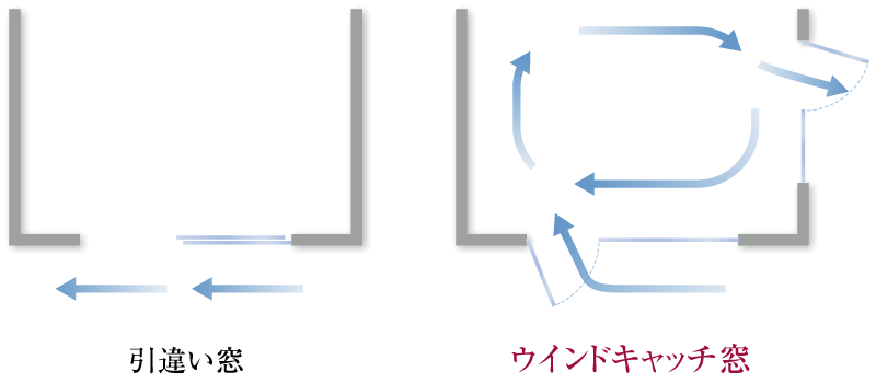 ウインドキャッチ窓を全邸に採用
