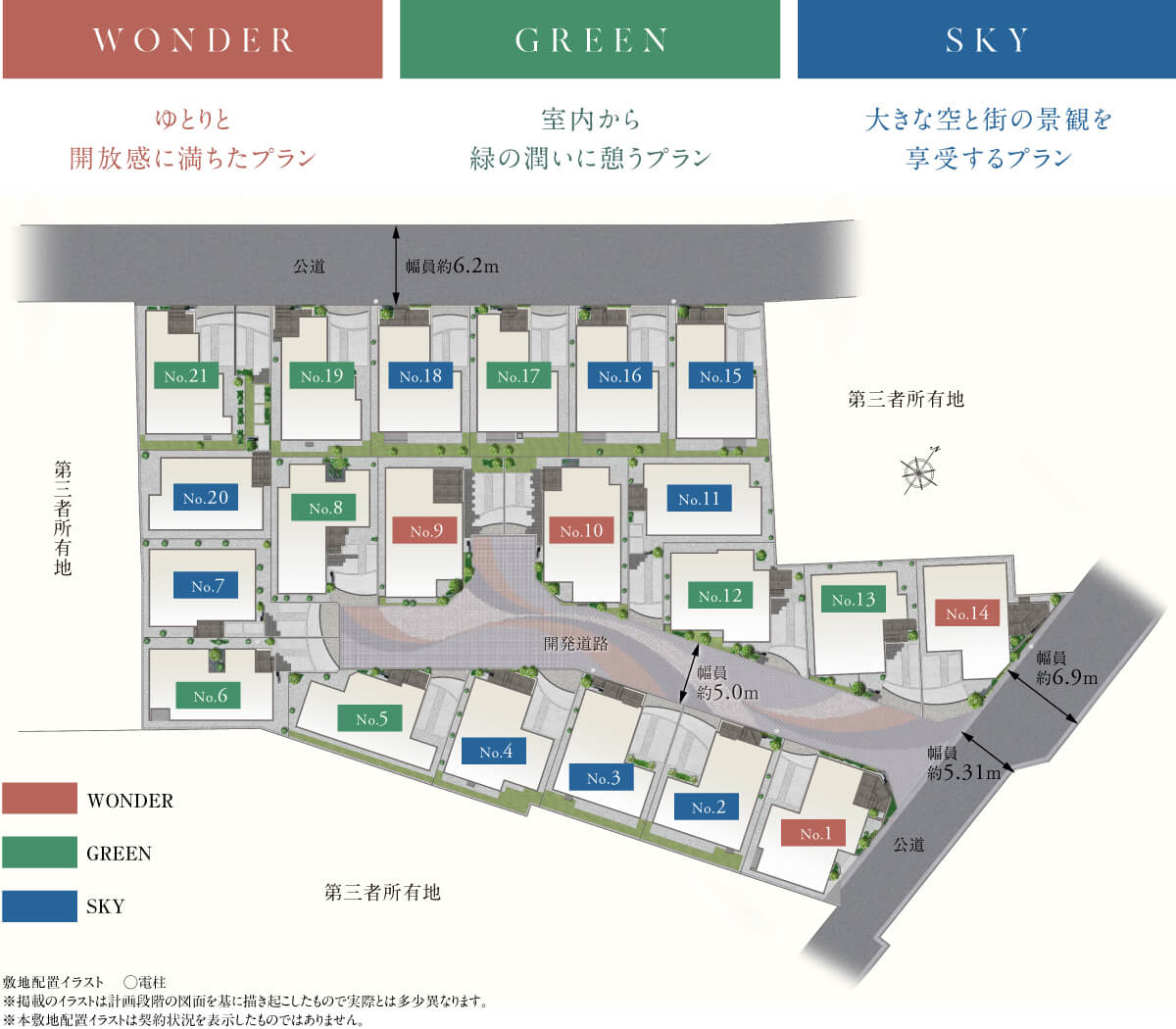 各邸の配棟に合わせた、3つのプランテーマをご用意。