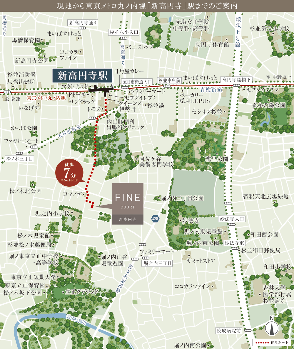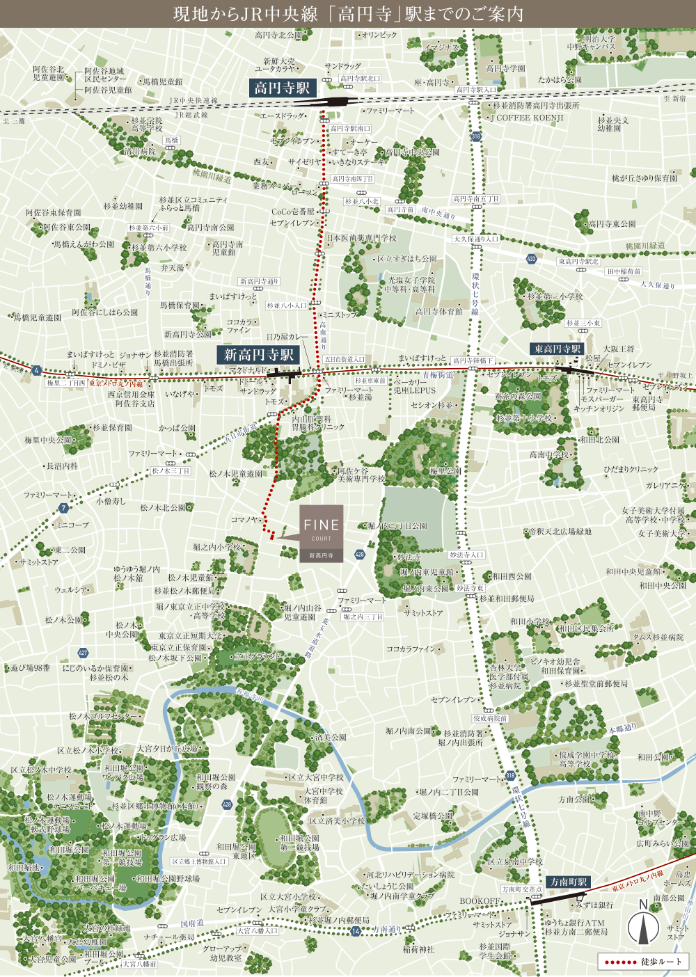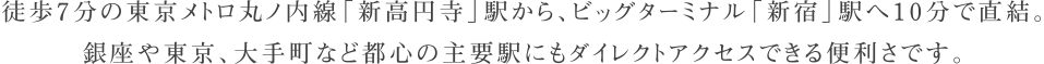 個性豊かな商店街で賑わう「高円寺」駅周辺も生活圏。自転車ではもちろん、散歩がてら徒歩でも気軽に楽しむことができます。