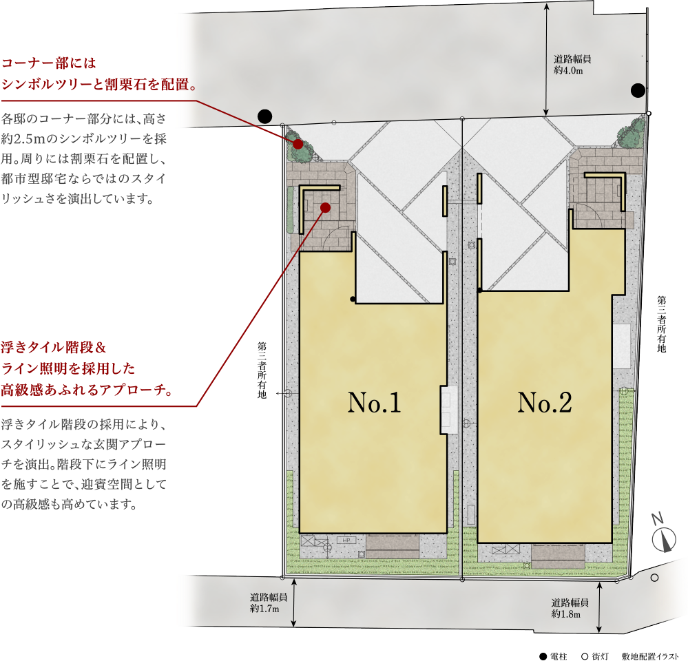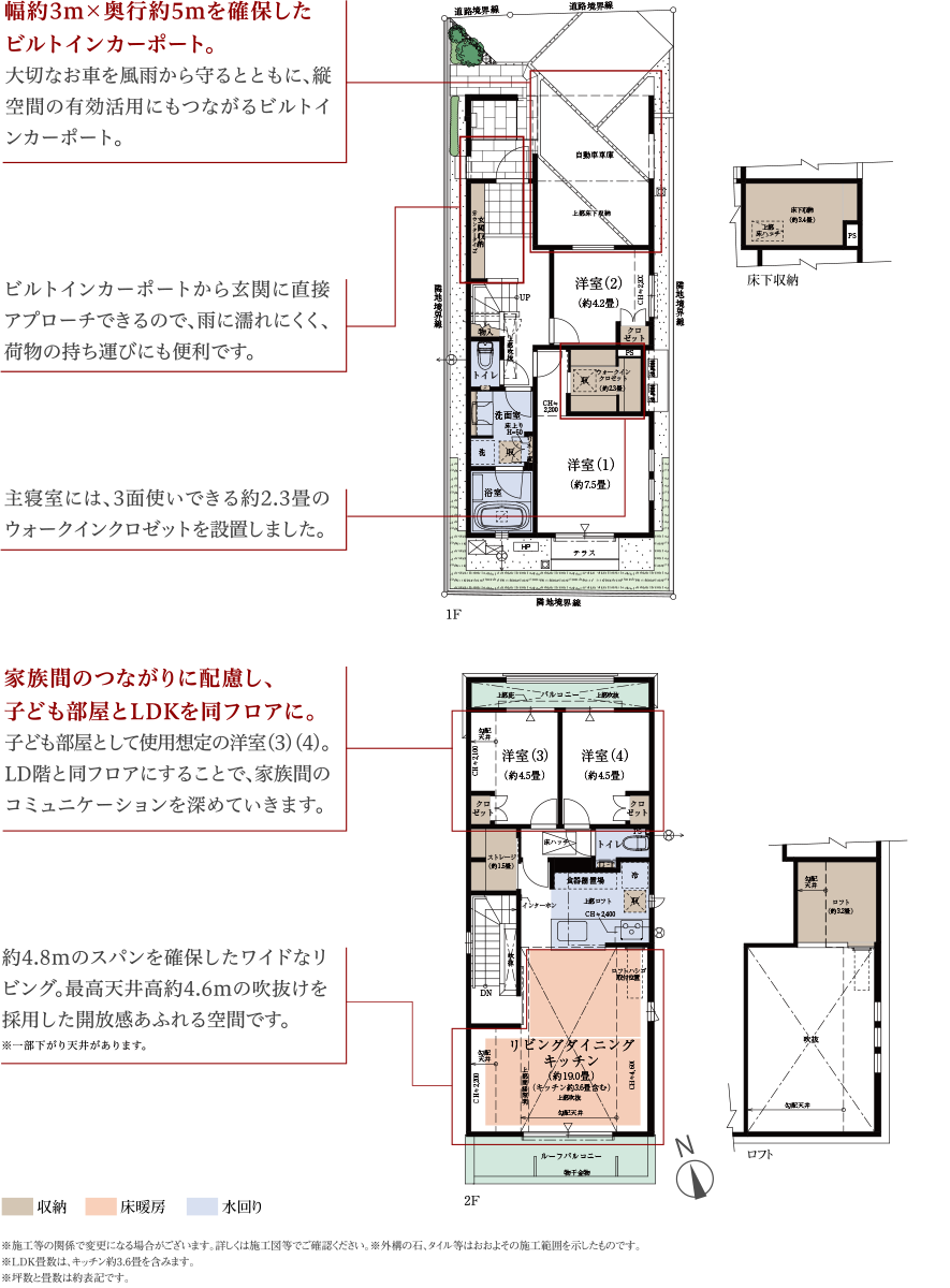 ※掲載の間取りは計画段階の図園を基に描き起こしたもので実際とは多少異なります。※施工時の関係で変更になる場合がございます。詳しくは施工図等でご確認ください。※外構の石、タイル等はおおよその施工範囲を示したものです。家具・調度品等は販売価格に含まれません。