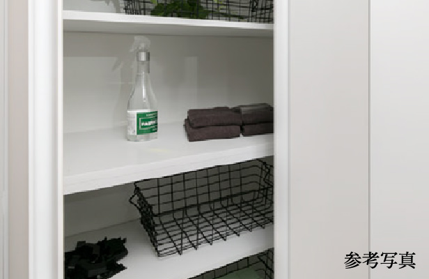 バスタオルやハンドタオル、洗面台周りの小物を収納できる便利なスペースを設置。