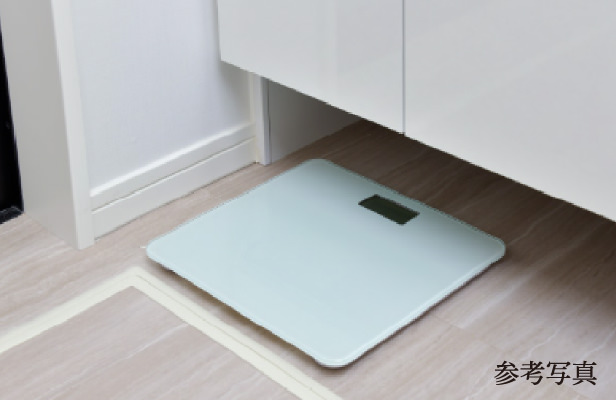 体重計をすっきりしまうことができるスペースを、洗面化粧台の足元に設けています。