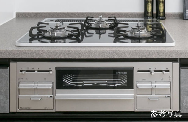 お手入れのしやすいガラストップコンロを採用。さらに、魚を美味しく焼ける、水なし両面グリルも装備しています。