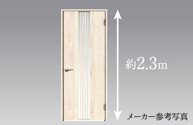 リビング・ダイニングの建具は、約2.2m~約2.3mのハイドアを採用。空間の豊かさと上質さを高めると共に、リビング・ダイニングを迎賓空間として演出する設えです。