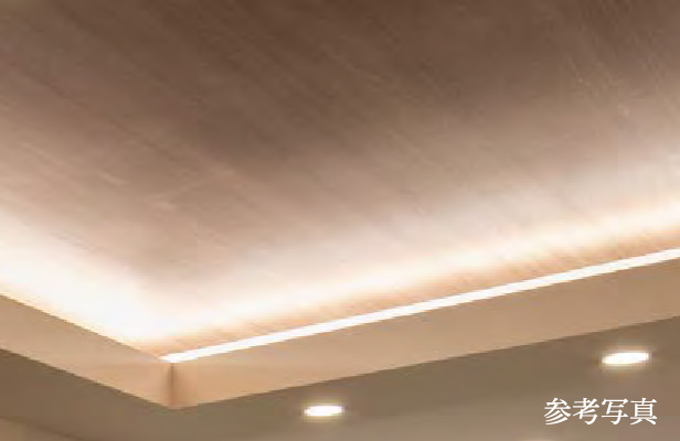 折上天井に設置された間接照明が優しい光を部屋全体に広げ、落ち着いた雰囲気を演出します。