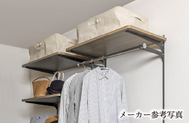 スタイリングフィットルームには、可動式の収納棚とハンガーパイプを設置。収納するものに合わせてレイアウトが可能です。