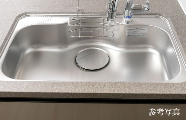 水道水や食器がシンクにあたる音の響きを低減する静音シンクを採用。大型の鍋なども洗いやすい幅広のワイドシンクです