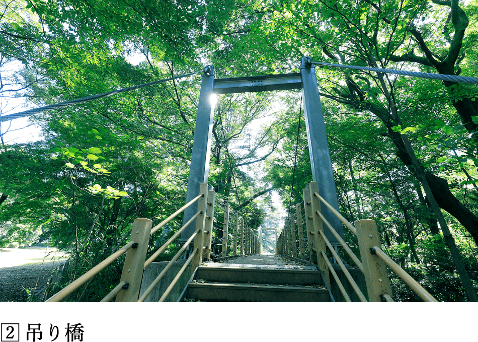 谷戸川上流に架かる都区部では珍しい歩道吊り橋。公園で過ごす一日をより豊かに演出すると共に砧公園の奥深い世界を物語る景観です。