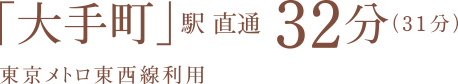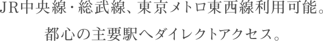 乗り入れの東京メトロ東西線を利用すれば、「大手町」駅へも直通で繋がる快適な環境です。