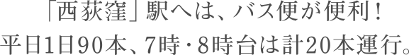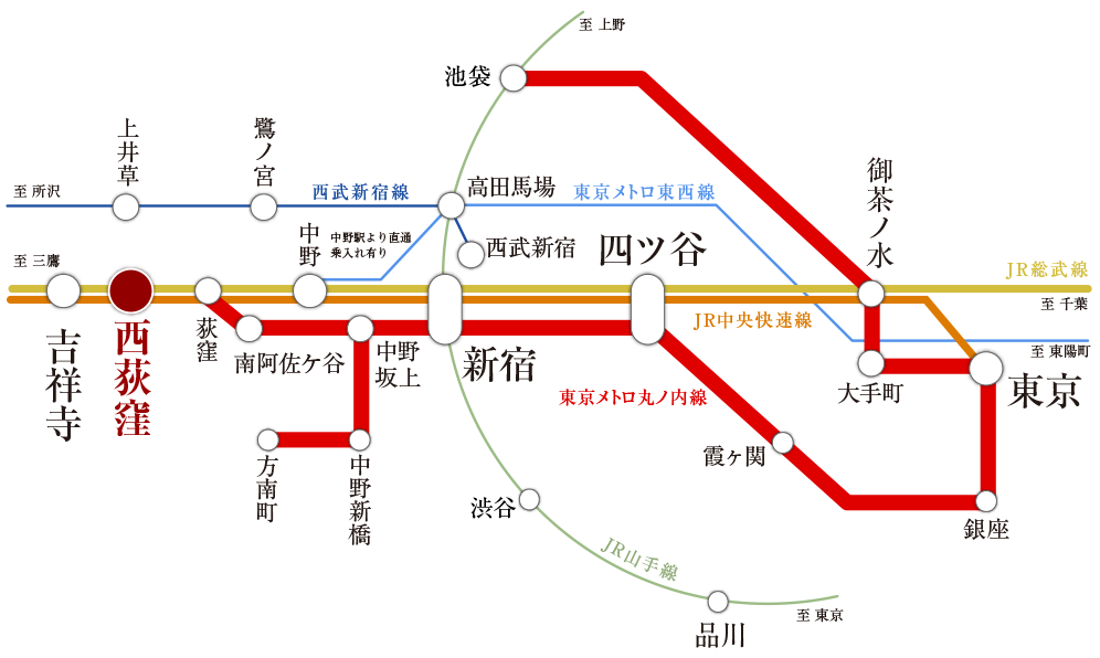 JR中央線「西荻窪」駅から、「新宿」駅や「東京」駅などのビッグターミナルにダイレクトアクセス。
