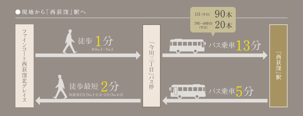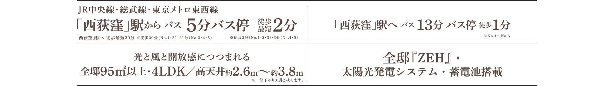 ※「西荻窪駅」駅 徒歩20分(No.1・2)・21分(No.3・4・5)、バス13分、バス停徒歩1分(No.1〜No.5)