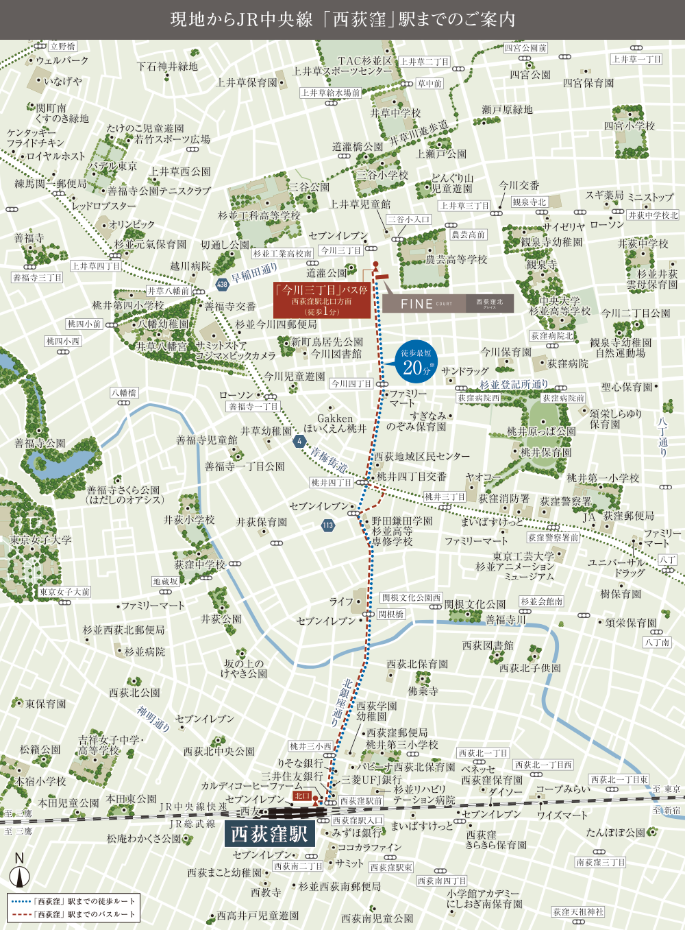 JR中央線・総武線・東京メトロ東西線「西荻窪」駅 徒歩20分~21分