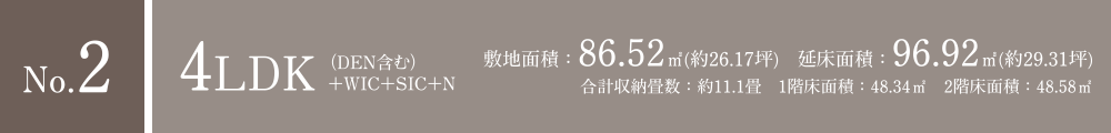 ※DEN=書斎 ※WIC=ウォークインクロゼット SIC=シューズインクロゼット N=納戸