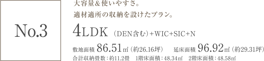 ※DEN=書斎 ※WIC=ウォークインクロゼット SIC=シューズインクロゼット N=納戸