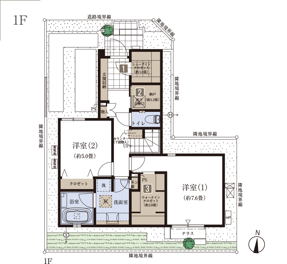 ※施工等の関係で変更になる場合がございます。詳しくは施工図等でご確認ください。※外構の石、タイル等はおおよその施工範囲を示したものです。