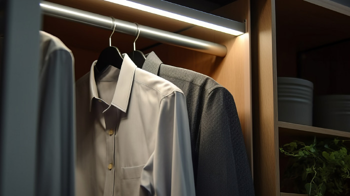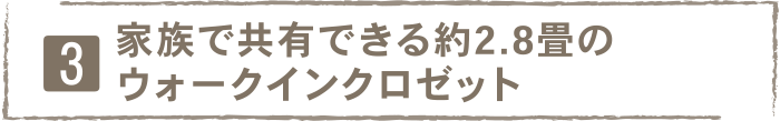 主寝室に約2.8畳のウォークインクロゼットを設置。入口をドア側に設けることで、就寝時間の異なる夫婦でも出入りで起こすことのないよう配慮されています。