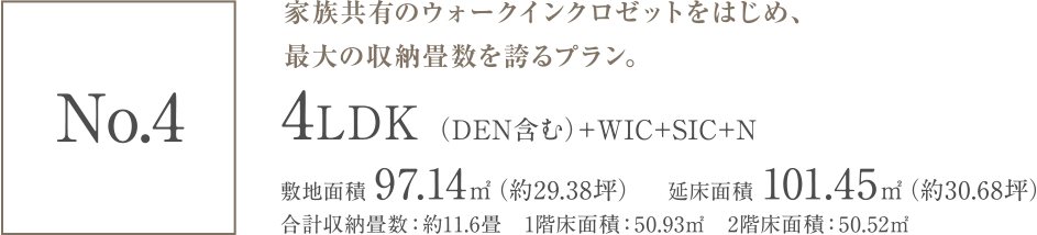 ※DEN=書斎 ※WIC=ウォークインクロゼット SIC=シューズインクロゼット N=納戸