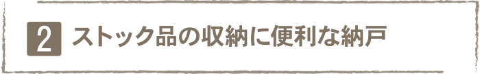玄関ホールに面して約1.3畳の納戸を設置。季節物やストック品の収納に便利な空間です。