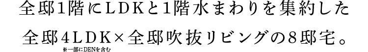 陽光とゆとりにあふれた邸宅空間を、さらなる開放感で演出した4LDK邸宅(一部にDENを含む)。開放感あふれるLDKと、家族の多様なライフスタイルを実現する独立個室。多様なライフスタイルに応える充実した収納。そして普遍的な暮らしやすさを実現するために1階にLDKと水まわりを集約。戸建てならではのゆとりを実感いただけます。