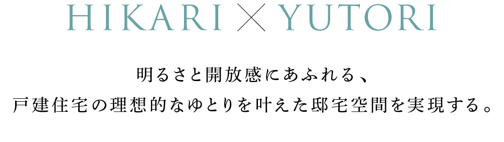 吹抜による「広さ」を「開放感」へと昇華する演出。ハイサイドライトからもあふれてくる陽光。ゆとりある敷地で緑に親しみ、プライベート空間で心ゆくまで開放感を謳歌できる。そんな戸建住宅のエッセンスがすべて込められた邸宅空間を実現しました。