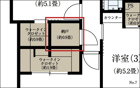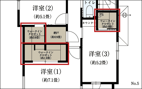 ※ウォークインクロゼット:No.1・3〜5・7に採用