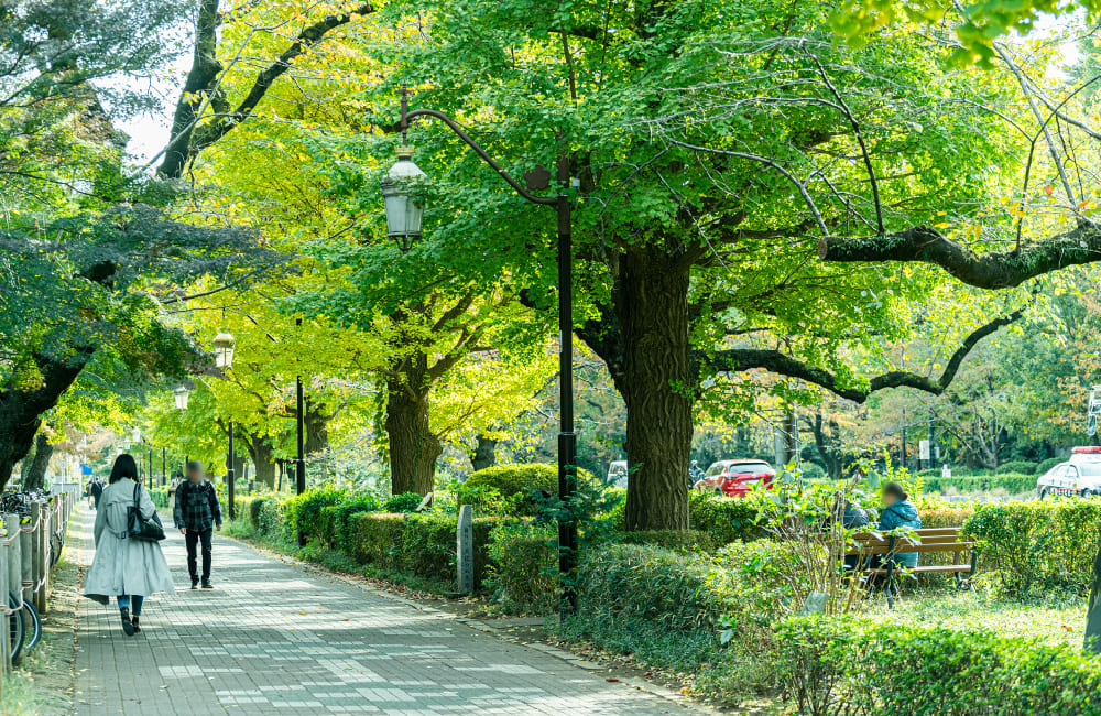 「文教地区」に指定され「新東京百景」に選ばれた約44mの道幅を持つ大学通り