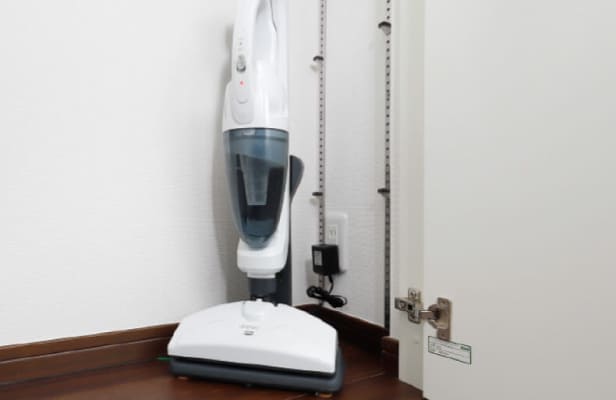 コンセントを内蔵した収納スペースを実現しました。充電式掃除機などを、しまいながらスマートに充電できます。