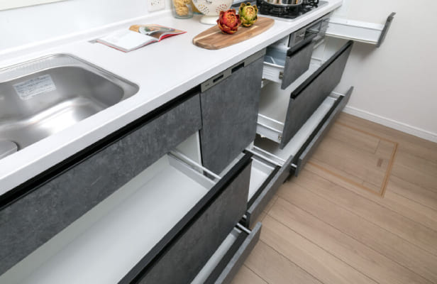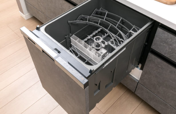 引き出し式で食器の出し入れが容易なビルトインタイプ。食器洗いの手間を省き、電気・水道代の節約に貢献します。
