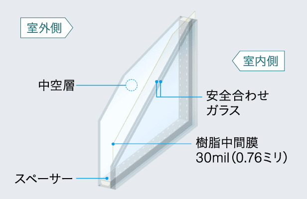 1階の窓には、割れにくく安全・防犯性能の高い合わせガラスを採用しました。