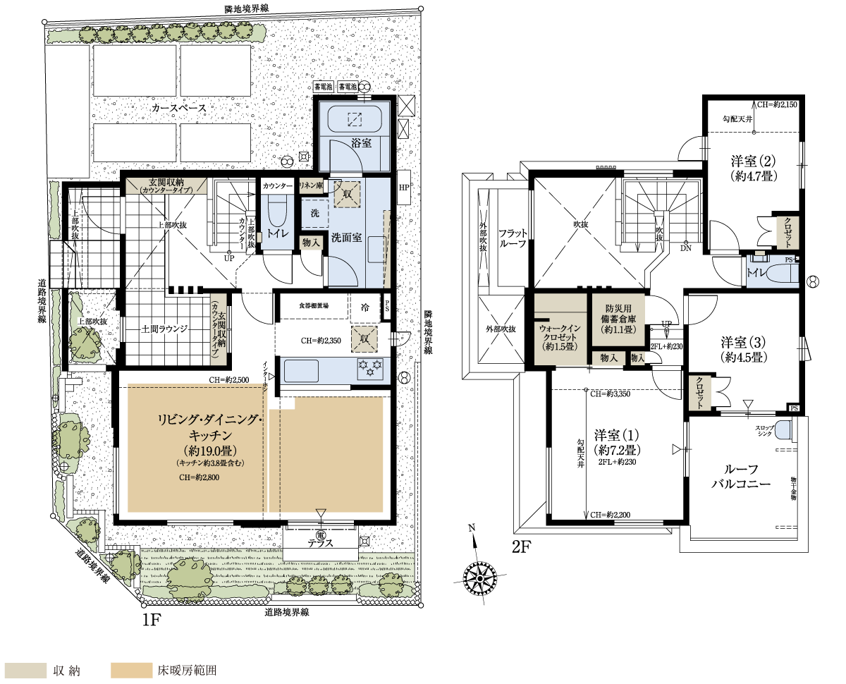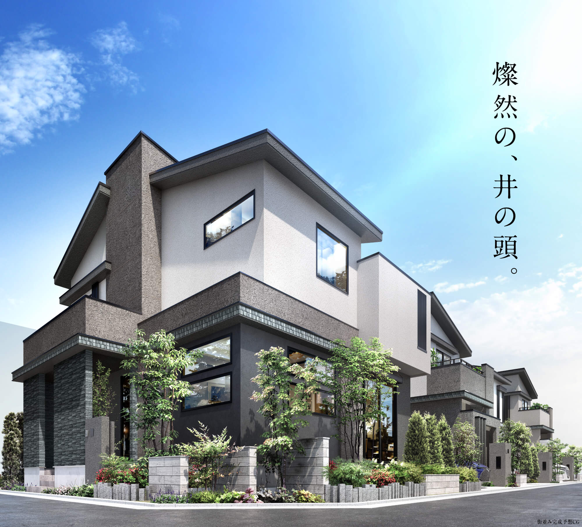 ※1:京王井の頭線「井の頭公園」駅徒歩9分(No.6)、徒歩10分(No.1〜5)。※2:京王井の頭線「井の頭公園」駅より通勤時「新宿」駅へ25分(京王井の頭線利用、「吉祥寺」駅よりJR中央線快速に乗り換え。平日日中も同経路で24分)。※3:約7.1畳の大型ルーフバルコニー/No.1。吹抜/No.2・3・6(玄関)、No.4・5(ダイニング)。※4:本物件は、経済産業省資源エネルギー庁が定める『ZEH』/ Nearly ZEHの定義、<①ZEH(ネット・ゼロ・エネルギー・ハウス)の強化外皮基準Ua値0.60W/(㎡・K)以下(物件の所在エリアの基準値) ②再生可能エネルギー等を除き、基準一次エネルギー消費量から20%以上の一次エネルギー消費量削減 ③再生可能エネルギーを導入(容量不問) ④再生可能エネルギー等を加えて、基準一次エネルギー消費量から100%以上(『ZEH』) / 75%以上 100%未満(Nearly ZEH)の一次エネルギー消費量削減 ※エネルギーに係る設備については、所有者を問わず当該住宅の敷地内に設置されるものとする。>を(『ZEH』:No.1・2・4・5/Nearly ZEH:No.3・6)満たしています。出典:経済産業省 資源エネルギー庁「令和元年度 ZEHロードマップフォローアップ委員会 とりまとめ」「更なるZEHの普及促進に向けた今後の検討の方向性等について」(令和3年3月31日 ZEHロードマップフォローアップ委員会)。※5:自転車は時速15km前後にて運転、道路法規に基づき計測しています。※6:JR中央線・京王井の頭線「吉祥寺」駅徒歩19分(No.1・4〜6)、徒歩20分(No.2・3)。吉祥寺マルイ/徒歩19分(総戸数6戸に対応)。キラリナ京王吉祥寺/徒歩19分(総戸数6戸に対応)。吉祥寺パルコ/徒歩22分(総戸数6戸に対応)。