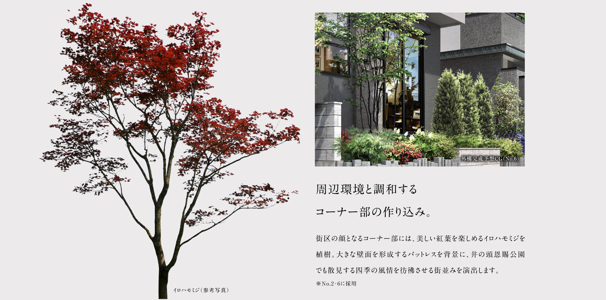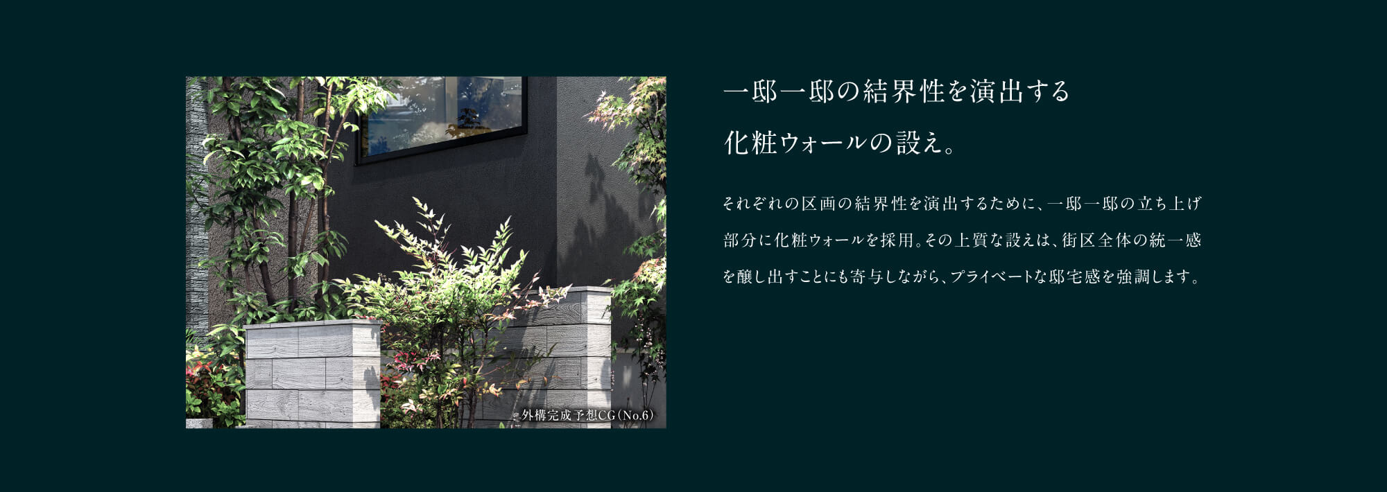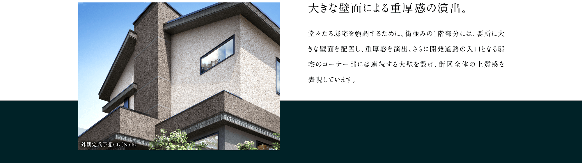 末永く、堂々と佇む、邸宅の本質を求めた外観デザインです。