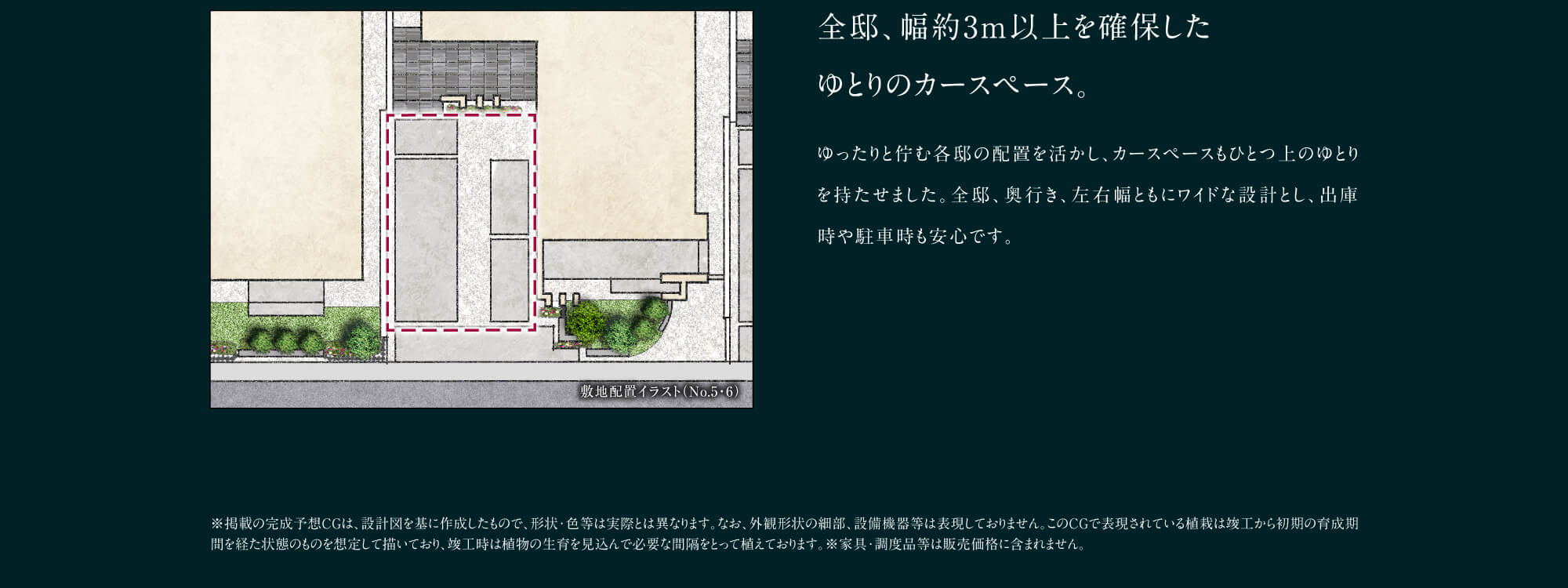 一邸一邸、陽光と開放感に燦然と佇む、開発道路を抱く街並み。