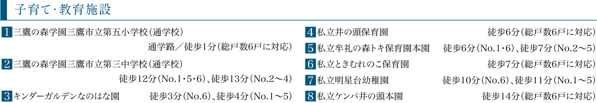 徒歩11分(No.1・6)、徒歩12分(No.2〜5)