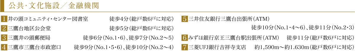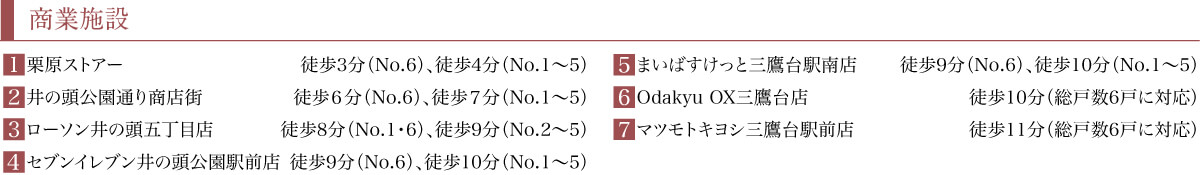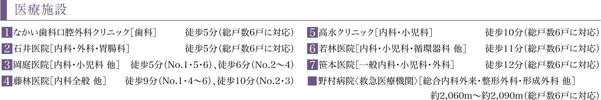 徒歩9分(No.6)、徒歩10分(No.1〜5)