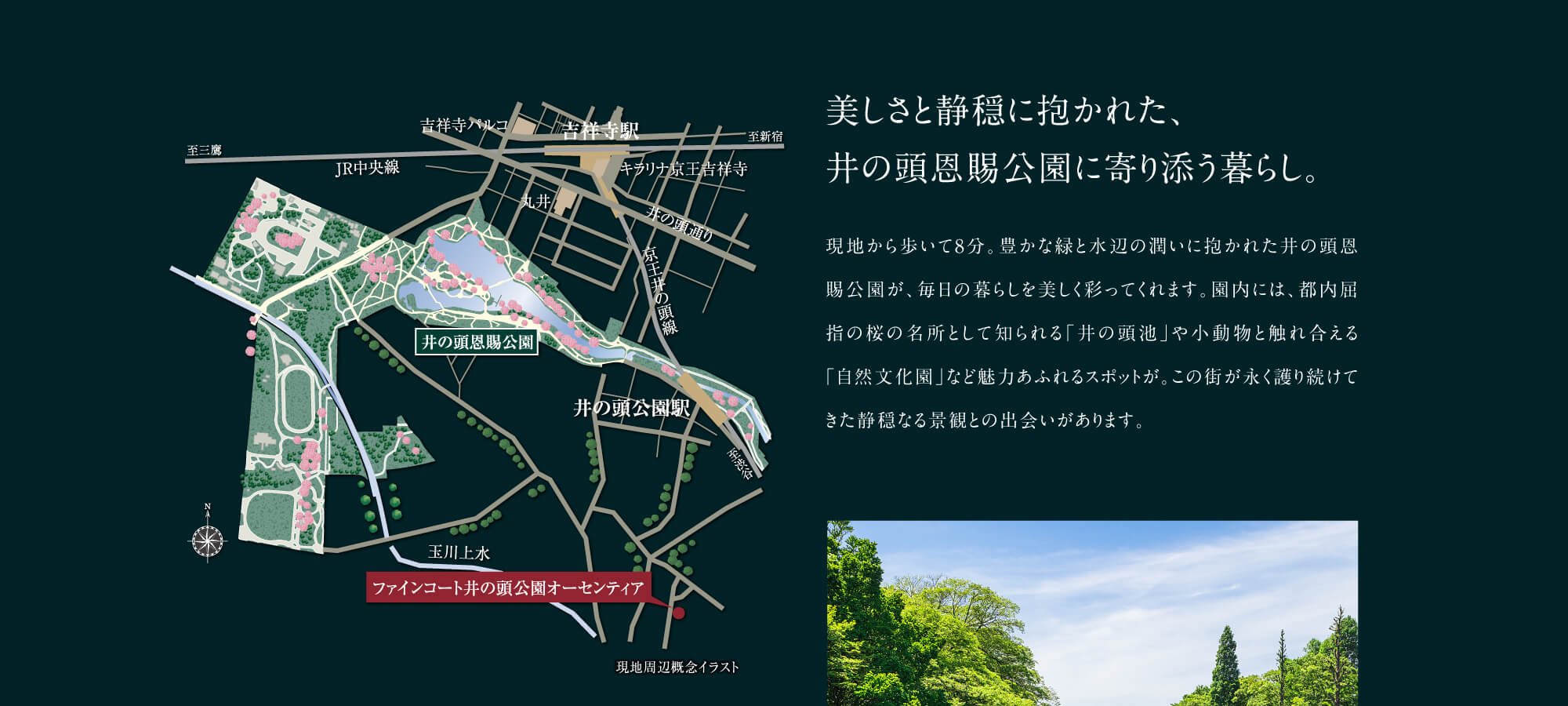 最寄りの京王井の頭線「井の頭公園」駅から「渋谷」へダイレクトアクセス。