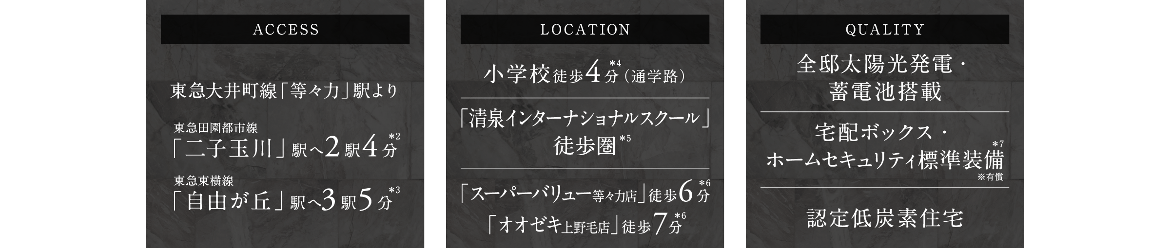 *1:東急大井町線「等々力」駅北口徒歩8分(No.1〜3)、東急大井町線「上野毛」駅正面口徒歩8分(No.1〜3)
