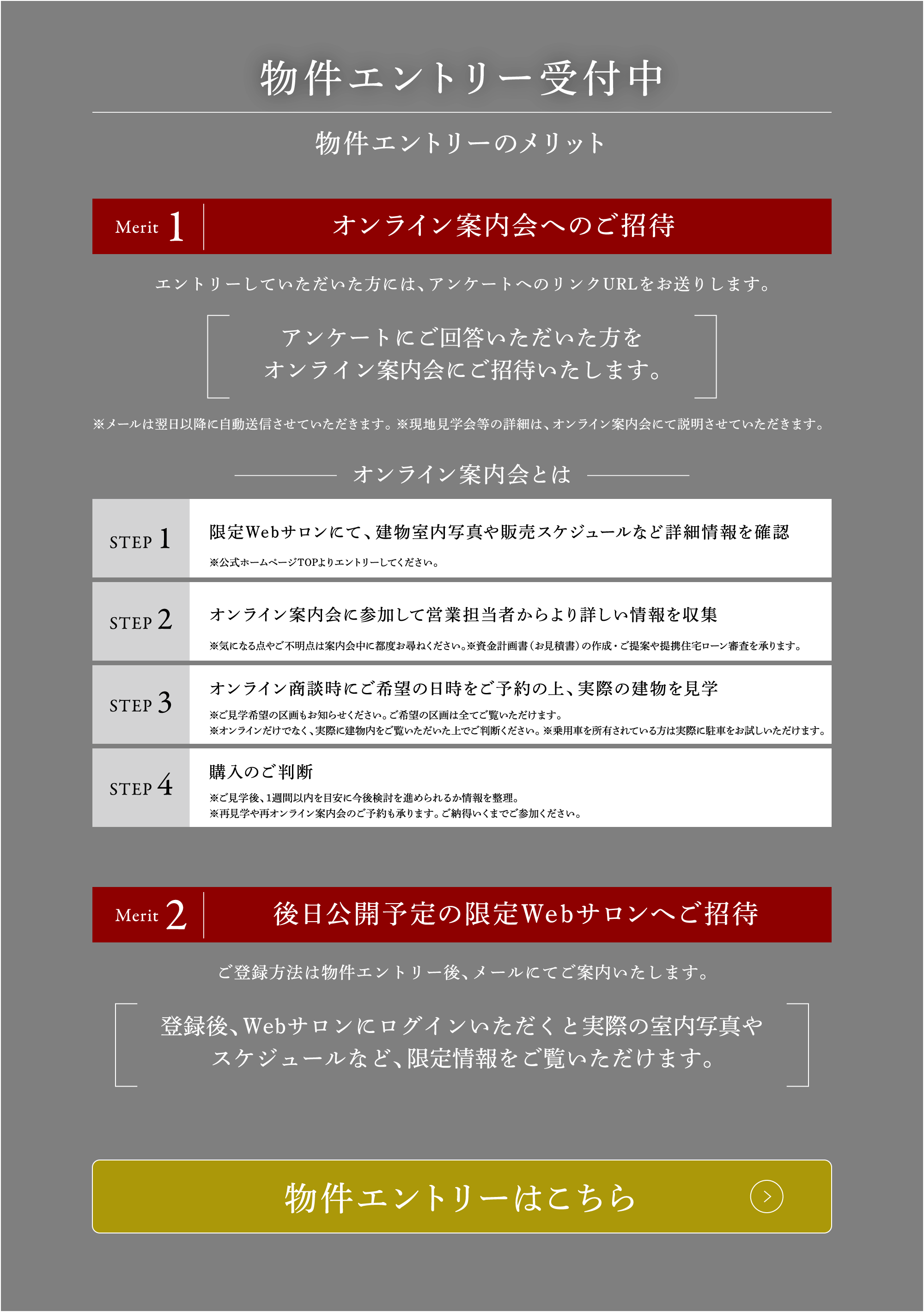 ※掲載の街並み完成予想CGは設計図を基に作成したもので、形状・色等は実際とは異なります。外観形状の細部・設備機器等は表現しておりません。 表現されている植栽は竣工から初期の育成期間を経た状態のものを想定して描いております。竣工時は植物の生育を見込んで必要な間隔をとって植えております。家具・調度品等は販売価格に含まれません。予めご了承ください。