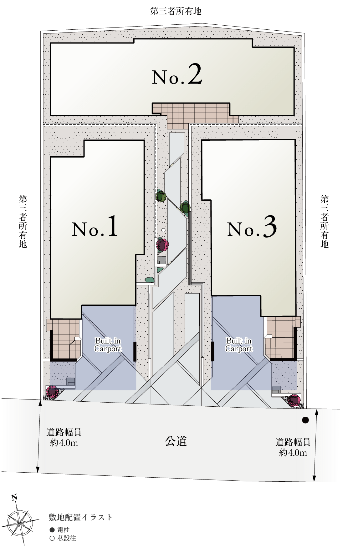 カウンター型の玄関収納上部やアイストップとなる壁面など、各邸の玄関にはアクセントタイルや壁面を美しく照射するためのコーニス照明などによる上質な演出を施しました。独創的な邸宅への愛着がより高まるデザインです。