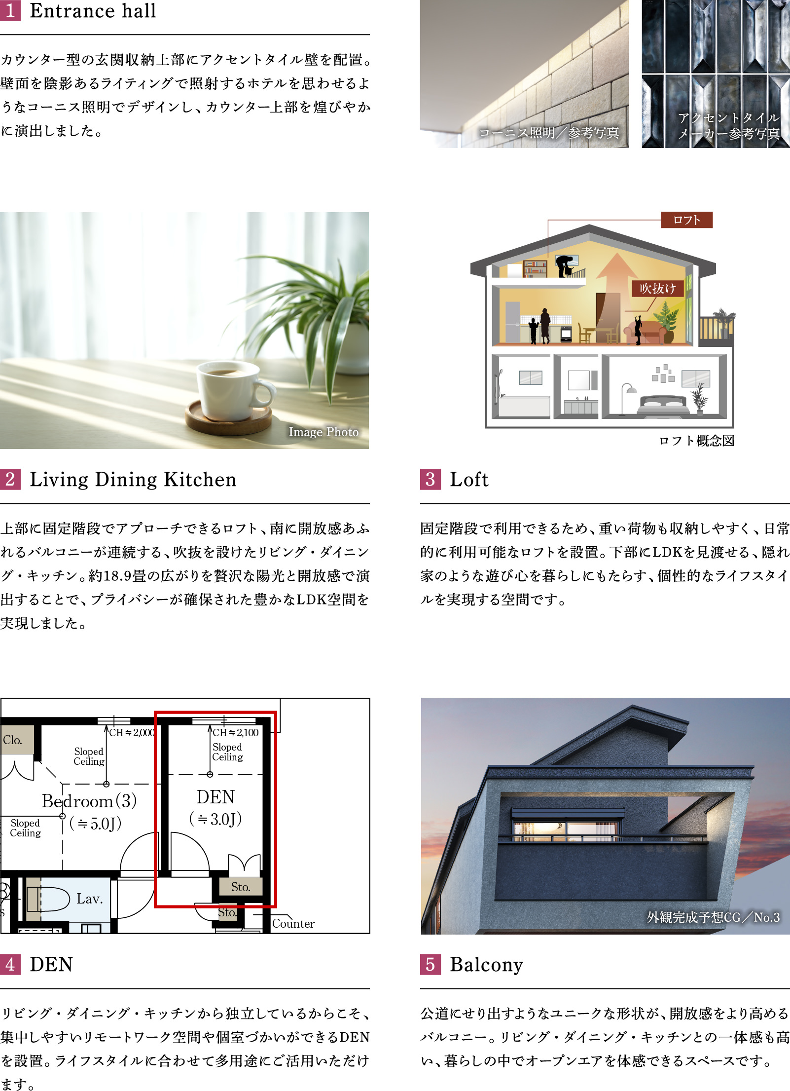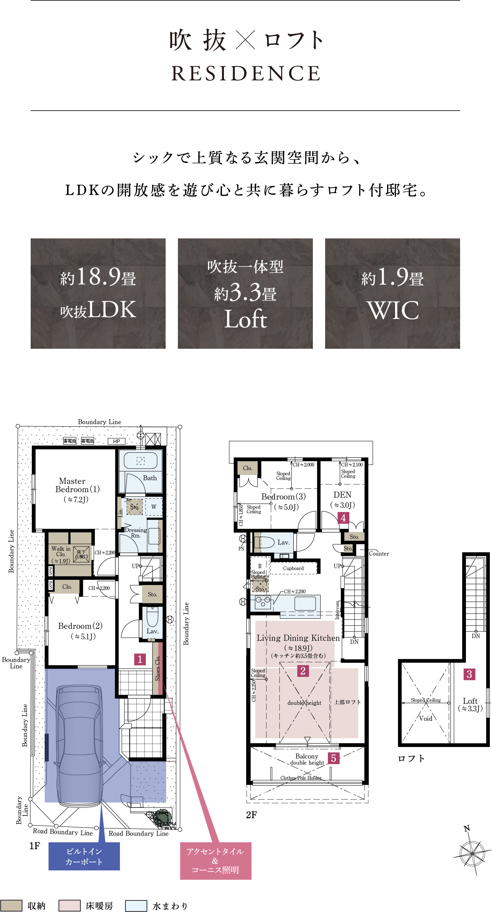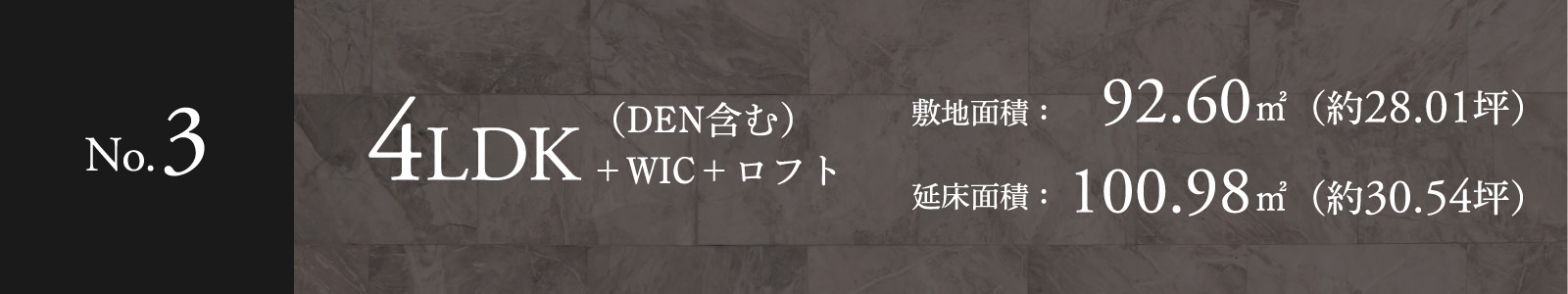 □1階床面積:50.23㎡ □2階床面積:50.75㎡ ※3号棟は上記延床面積に車庫面積8.62㎡を含みます。 ※施工等の関係で変更になる場合がございます。詳しくは施工図等でご確認ください。※外構の石、タイル等はおおよその施工範囲を示したものです。※坪数と畳数は約表記です。※DEN=書斎 ※WIC=ウォークインクロゼット ※敷地の一部(0.50㎡)には歩車の通行のため地役権が設定されます。詳しくは係員にお尋ねください。 ※家具・調度品等は販売価格に含まれません。予めご了承ください。