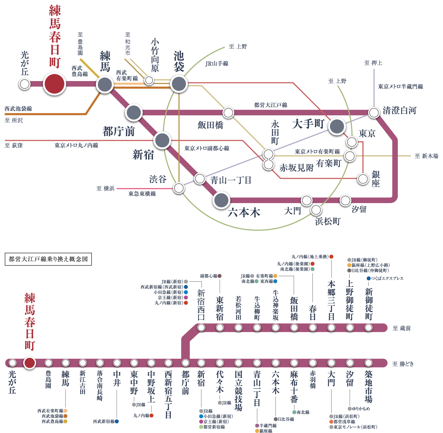 ※1:都営大江戸線「練馬春日町」駅より「新宿」駅へ通勤時23分(都営大江戸線利用)・日中時22分(同経路)