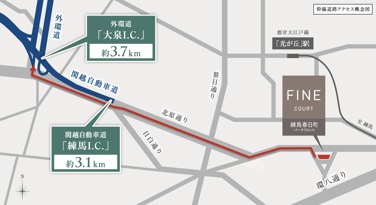 関越自動車道「練馬I.C.」へ約3.1km、外環道「大泉I.C.」へ約3.7km