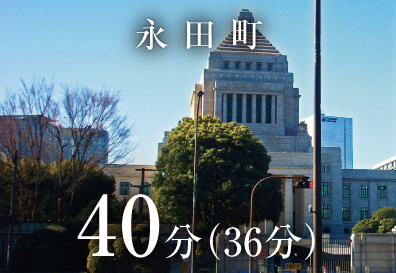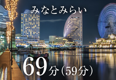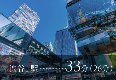※掲載の所要時間は、通勤時〈7:30~9:00〉の目的地へ到着する最多の所要時間です。乗り換え、待ち時間等を含みます。時間帯によって異なります。( )は平日日中〈11:00~16:00〉となります。※2025年12月現在の情報をもとに作成しておりますので、今後変更となる場合がございます。予めご了承ください。