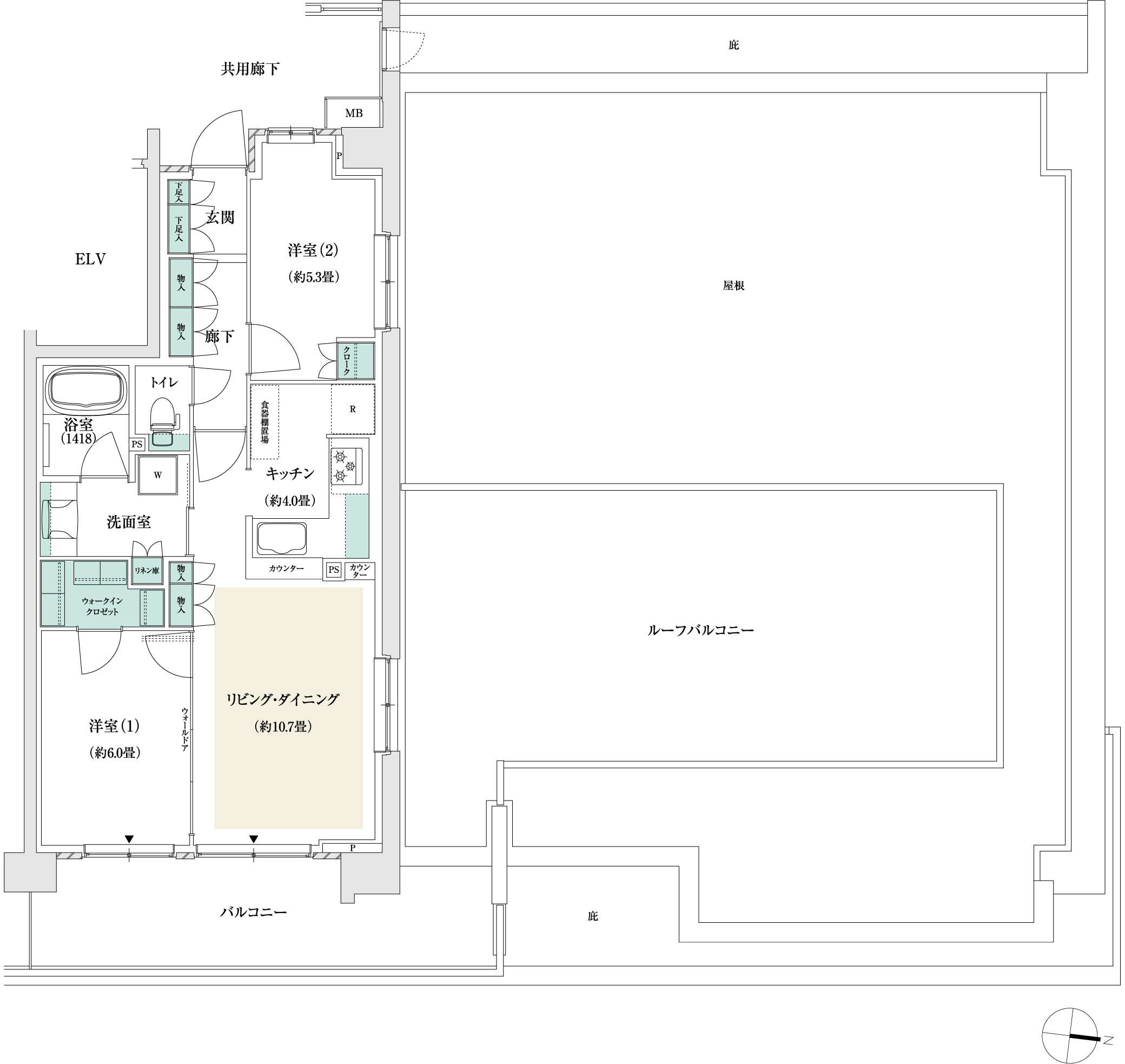 専有面積:60.87㎡(約18.41坪)