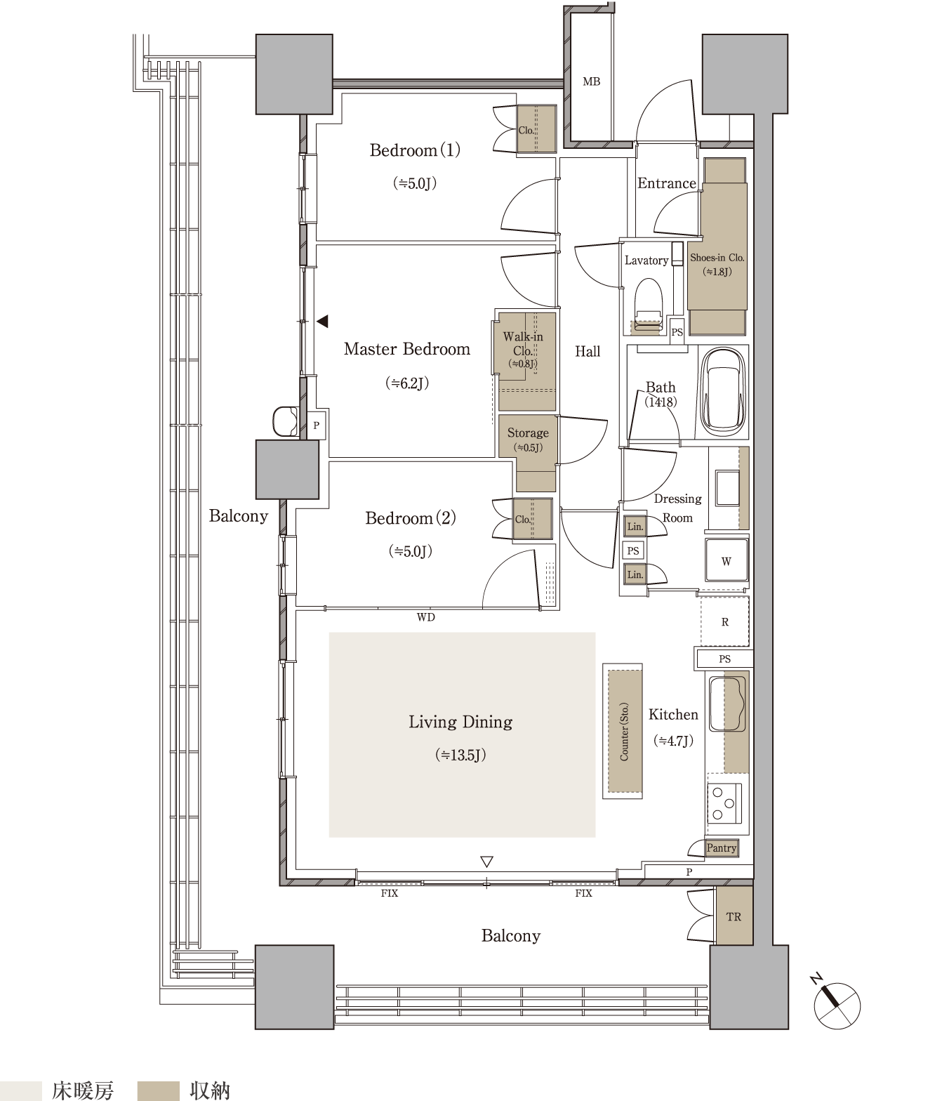 ※WIC:ウォークインクロゼット SIC:シューズインクロゼット S:納戸(storage) TR:トランクルーム